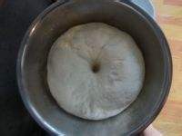 用手指在面团上插个洞,不回缩就是发好了。将发酵好的面,排气揉成光滑的面团。