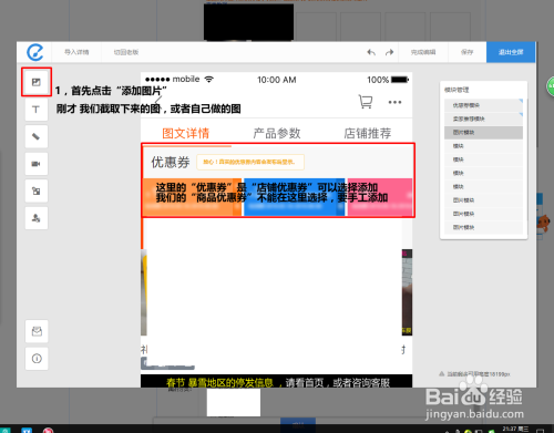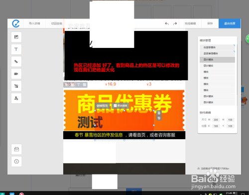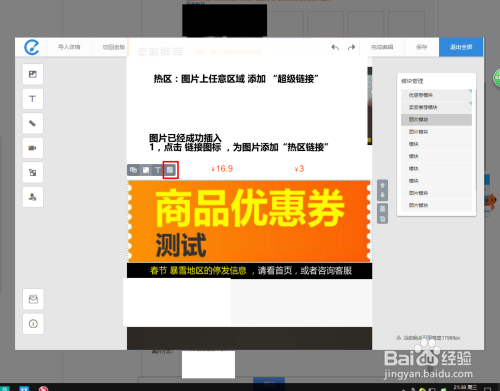 注:商品优惠券不会自动显示在商品中,要手工添加“优惠券图片”“优惠券 链接”