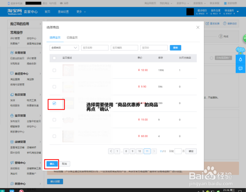 3,选择需要使用“商品优惠券”的商品,现点“确认”