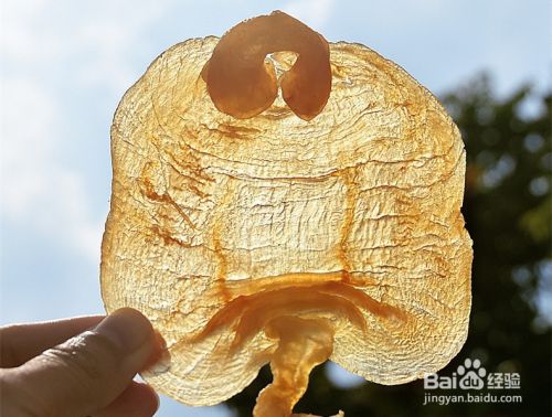 首先,要仔细地去看它的颜色。真正的天然的花胶,颜色是金黄色的,而且里面还会有那么一点的杂质,而且可能还会有一些血丝,甚至是血块,感觉就像是鱼身上掉下来的一块肉。而人工的、假的花胶,是白色的,看起来挺完美,就像是机器做出来的一样,这种不要买,一般都是人工合成,并经过化学品泡过的。