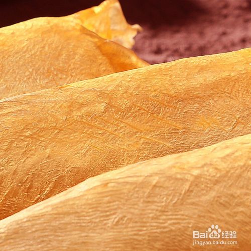第四,看它的“皮肤”。花胶是鱼的器官,是一种自然物,因此,好的花胶纹理是非常自然而清晰的。我们在买花胶的时候,要看一看它是否有清晰的纹理,摸一摸纹理是不是有层次感。假的、劣质的花胶,有的没有纹理,有的则是人工纹理,很不自然,特别有规律。