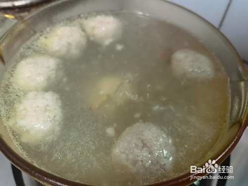 锅中烧水开后放入丸子煮,煮到浮出水面。