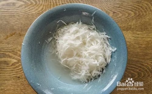 把萝卜去皮,切丝。(如果有刨床,会很简单。如果你手头没有,就把它剪掉)