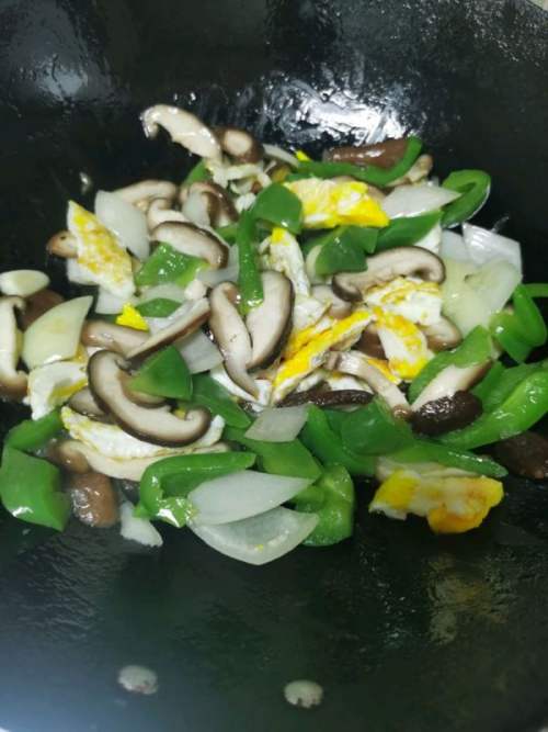 放入焯好的食材翻炒,倒入料汁,里面是耗油,盐,生抽,胡椒粉,少许白糖