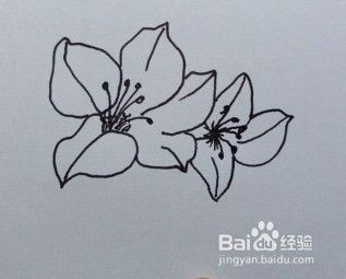 第六步:用中性笔画叶子、枝干、花瓣的细节。