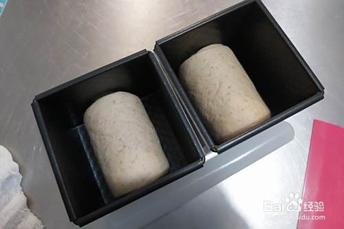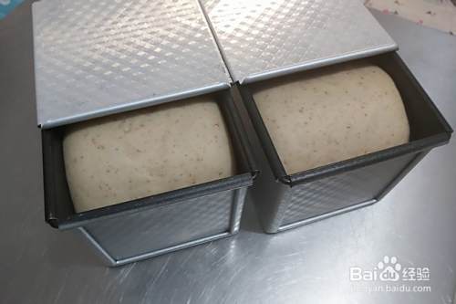当面团发酵至八九分满的时候,取出吐司盒,给烤箱180度预热。(如果是碳钢吐司盒,建议降低一定温度)