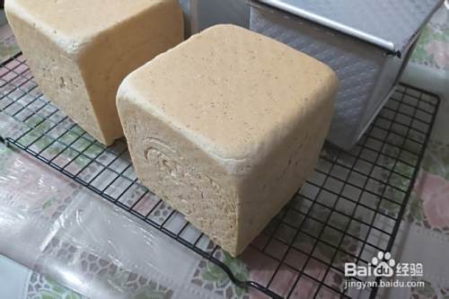 烤箱预热十分钟后,把吐司盒子放入烤箱内,中下层烘烤35-40分钟。(温度时间仅供参考,每个烤箱的脾气都有所不同)烘烤结束后,立即取出模具,震一下,脱模,放置在晾架上晾至手温后密封保存。