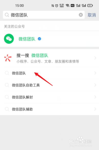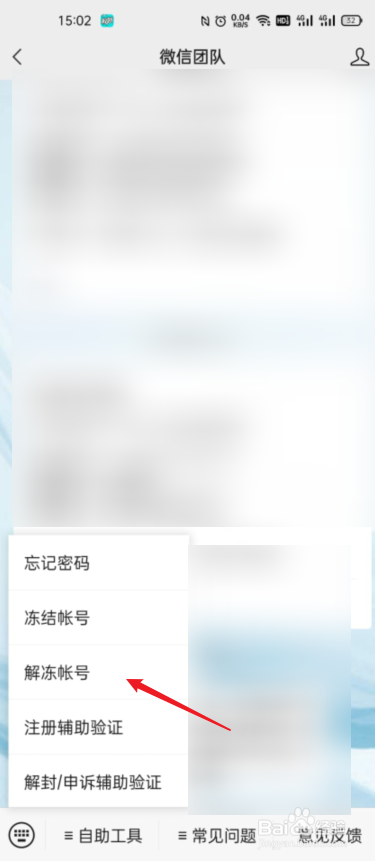 在微信打开搜索功能,打开微信团队页面使用自助工具功能,打开解冻账号功能输入相应微信号后开始申诉,申诉成功后就可以解除微信限制