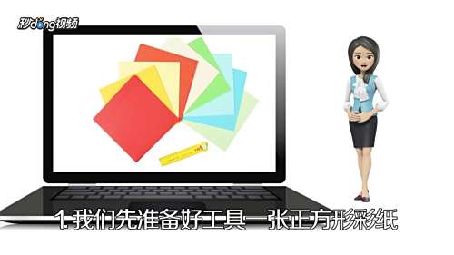 1先准备好工具,一张正方形彩纸,一把剪刀,一支笔备用,然后把彩纸的中线对折一下再打开。