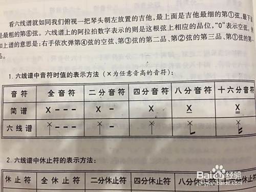 如果我们不熟悉弹奏歌曲的节奏,就要通过认音符来判断每个音应该弹奏多长时间。音符的时长是相对的,并不绝对,比如八分音符是四分音符的一般,十六分音符是八分音符的一半,二分音符又是四分音符的两倍,全音符是四分音符的四倍。在同一首曲子里面的弹唱只要保持音符的相对比例就可以了。下图有各种音符在吉他谱(六线谱)和简谱中的表示方法。