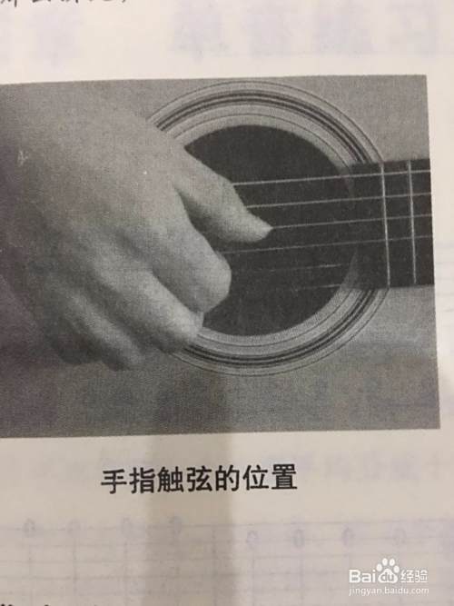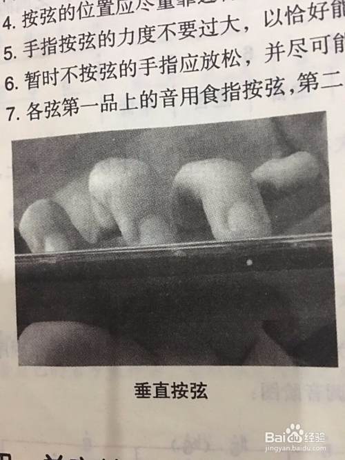 左手的按弦方法,手臂自然下垂,拇指放在琴颈上,手掌心要空,不能接触琴颈。使用各手指的第一关节垂直按弦,按的时候按品的下半部分比较省力。