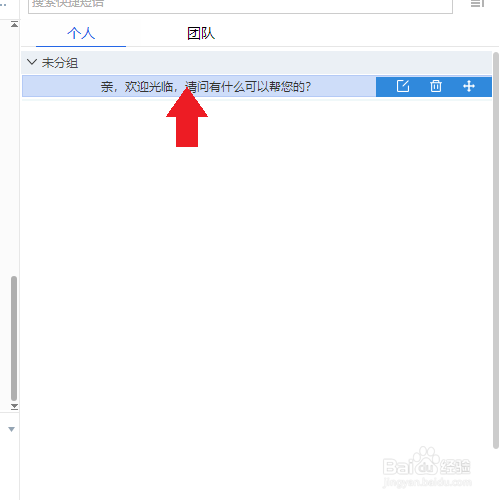 第五步,返回刚刚那个页面,我们就可以看到新建的快捷回复短语,我们用鼠标点一下就可以发给买家了。