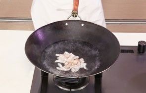 2 锅中注入适量清水烧开,倒入猪皮丝。