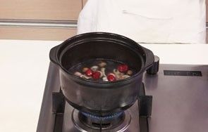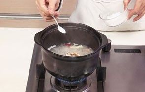 7 盖上盖,煮沸后用小火煮约60分钟,至食材熟透。