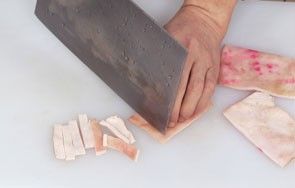 4 捞出汆好的猪皮,沥干水分,待用。