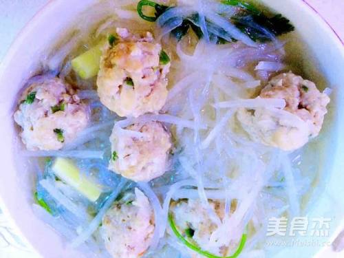 将肉丸倒入锅中,煮熟,再加几根香菜,煮一小会儿就可以食用啦!