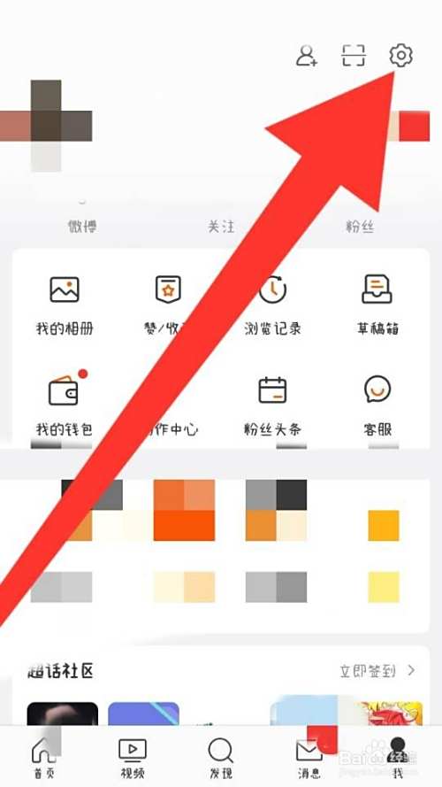 首先打开微博app,点击下方我的,再点击右上角设置图标进入设置页面。