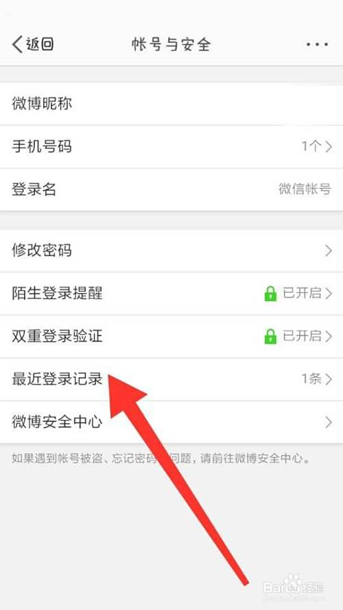 进入“账号与安全”这个页面后,点击倒数第二个“最近登录记录”。