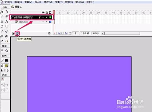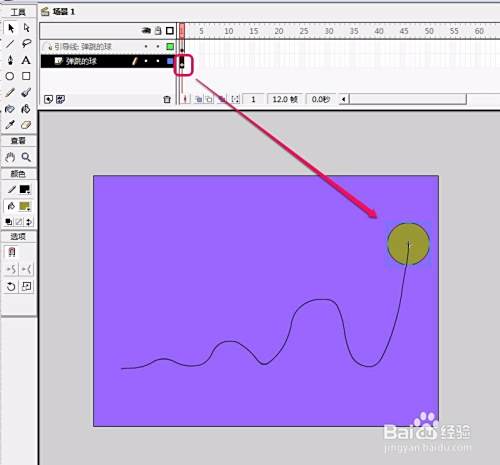 flash中使用引导线可以比较容易地制作复杂的动画。下面来看看怎么做“弹跳的球”的动画吧。