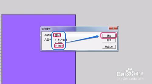 在“组件属性”对话框中,更改名称为“圆球”,选择“图形”类型,然后单击“确定”按钮。