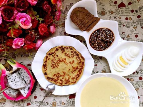 来碗米糊,一碟水果,一个鸡蛋,几片牛肉,营养丰富。早餐就它吧。