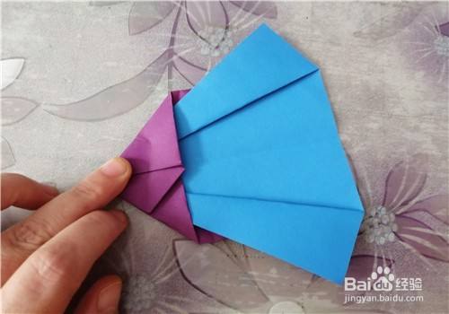 按照折痕,把角折到里边去,上边的角同样操作,如图三。