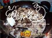 加入冷水,放生姜、八角、茴香(用茶包包好)
