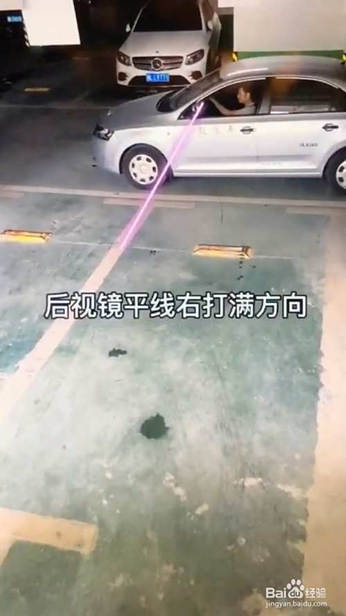 当后置镜看到直角之后,停车,向左打满方向盘倒车。