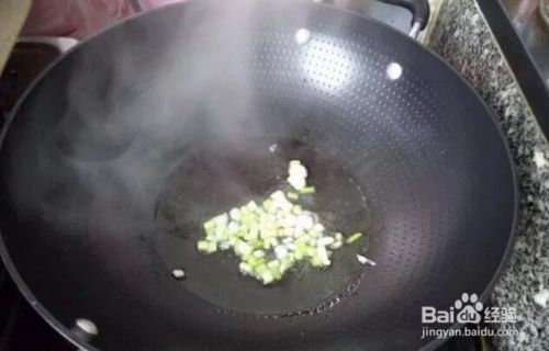 锅内放油烧热,小火爆香葱花