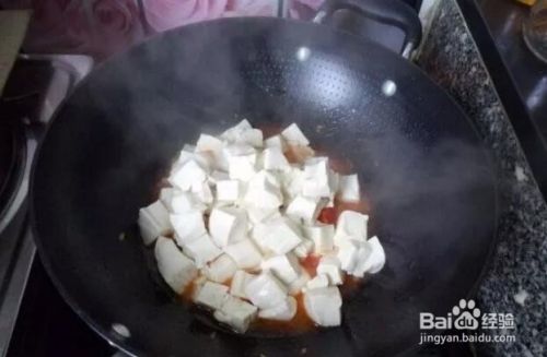 倒入豆腐块,小心翻炒