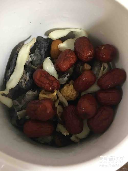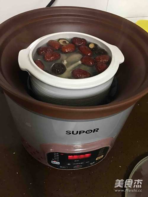 放入炖盅内,放入洗净的红枣,桂圆肉,无花果,玉竹,香菇,姜片