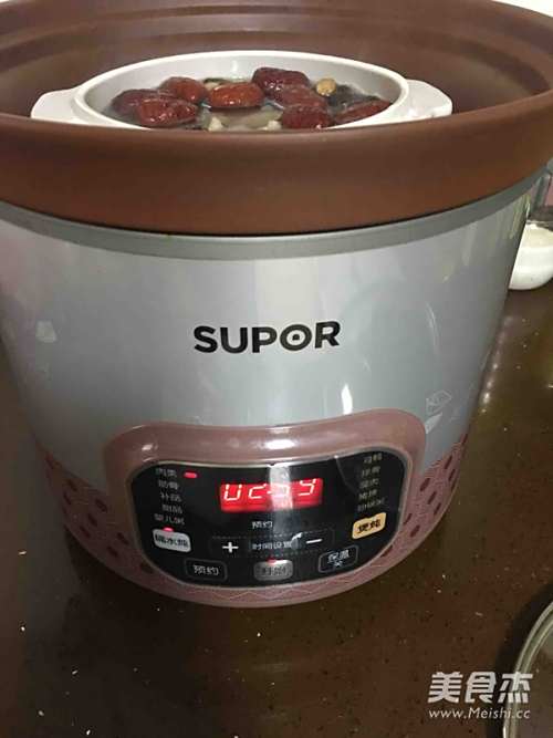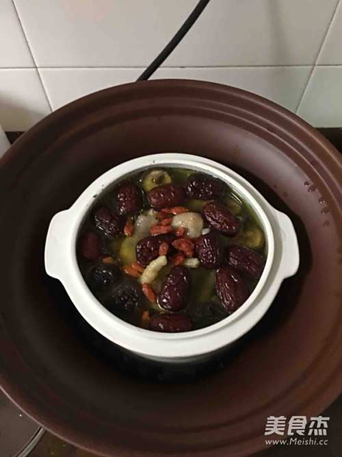 炖至两个小时后放入枸杞子和盐继续炖至三个小时后即可食用