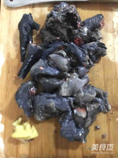 乌鸡洗净切片,鸡脚洗净切去爪尖,姜切片