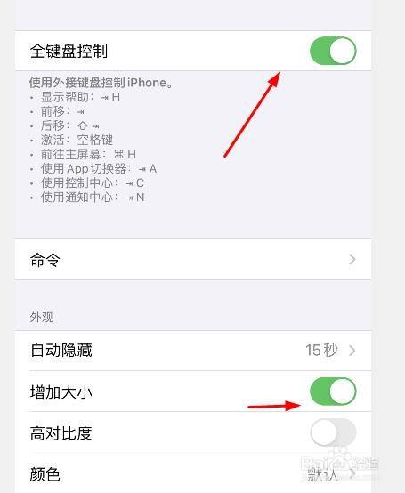 最后我们就可以开启“全键盘控制”下的“增加大小”来调节