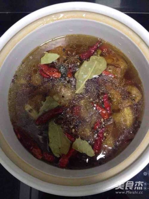 将排骨全部倒入砂锅。放入凉水,香叶,桂皮,花椒,辣椒,八角,大火炖20分钟,