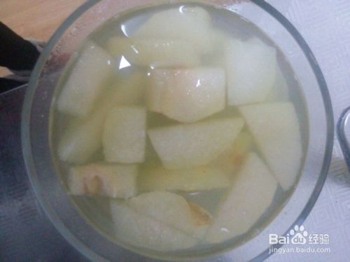 1、切好的梨要泡在清水中,以免氧化发黑;也不要用铁锅。