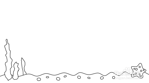 取张白纸,横向放置。在白纸底部画上海草、海星和沙滩。