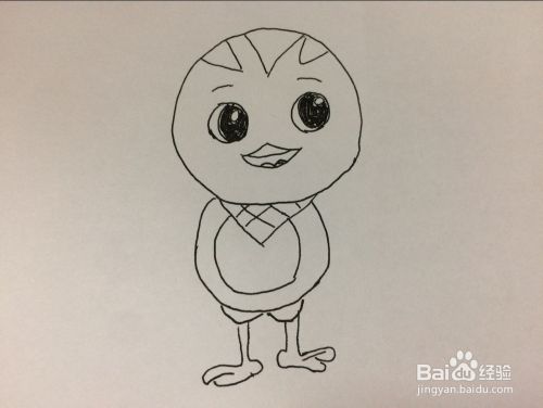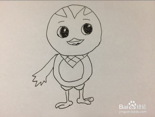 接着再画出两只手臂;萌鸡麦琪就画好了,可以填上喜欢的颜色。