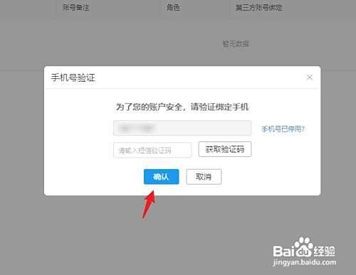 在弹出的提示内,输入获取的验证码,点击确认。