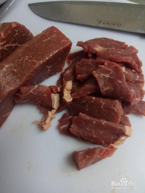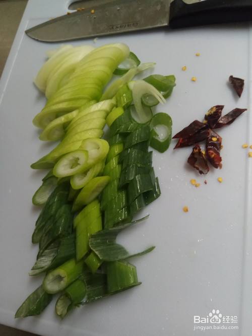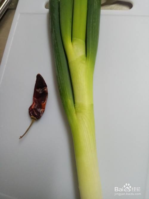 大葱清洗干净之后切成丝,牛肉切成薄片。干辣椒洗净后切成小段。