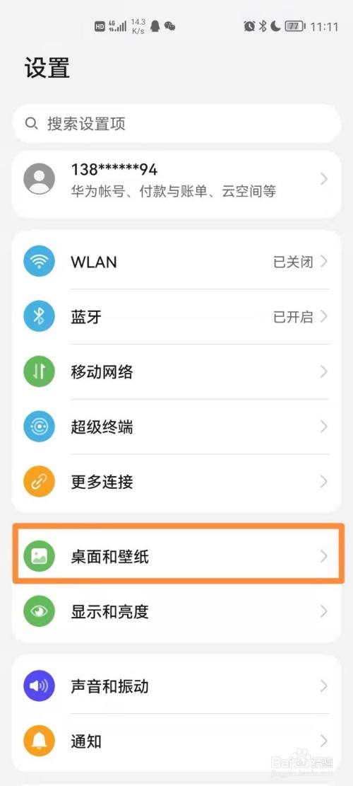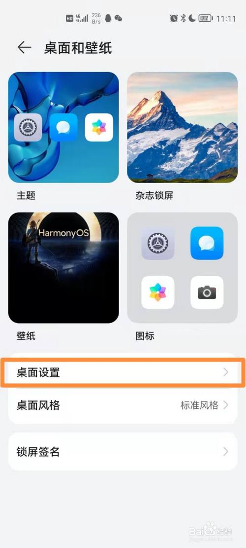 在设置中找到并打开桌面和壁纸