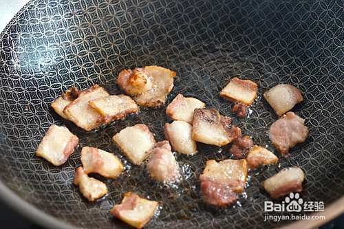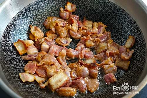 炒锅烧热,放入肥猪肉炸出油来,油留下1勺便可以了。记得多这一步,会特别香。