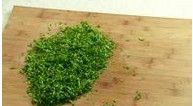 首先将韭菜去梗,去掉老叶,茼蒿去梗,去老叶,将韭菜、茼蒿洗净,挤干水分,切碎。