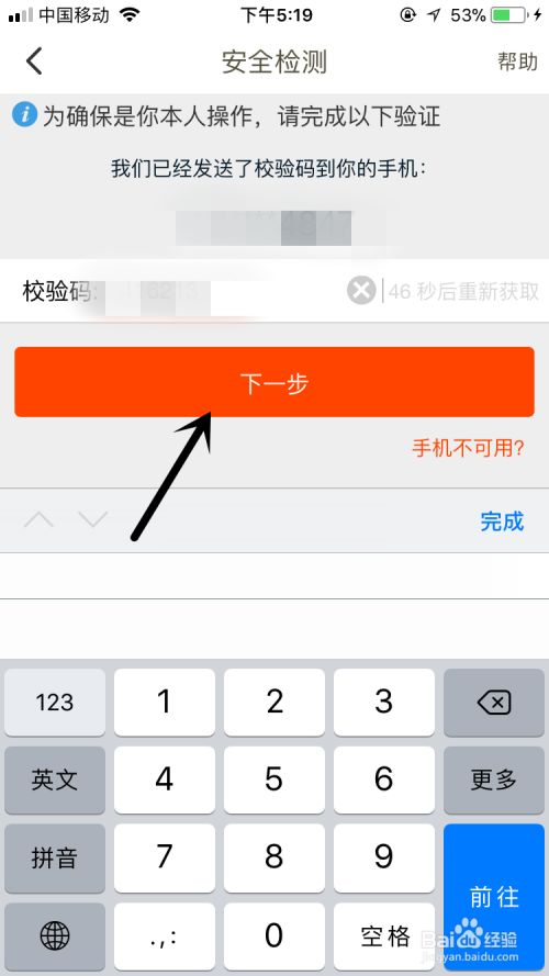 不到一分钟,手机短信收到了验证码,将验证码输入款框里,再点击确定,就可以了。