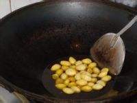 起油锅加热,放入白果煸炒2分钟,再放入杂菜煸炒3分钟,然后放入虾仁煸炒2分钟