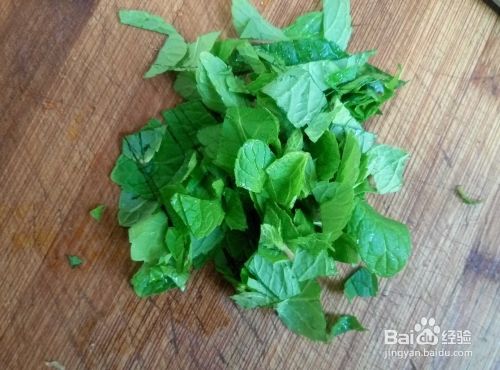 薄荷,就最新鲜的了,自家阳台大花盆上种的。摘取最嫩的部分,不用太多;用水清洗干净后,切碎备用。