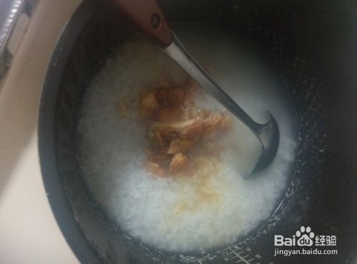 煲稀饭的时间为30分钟,时间完成后开盖加入腌制好的鸡腿肉;盖盖子,标准时间煲6分钟;就是加入鸡腿后再次加电煲至粥水沸腾。