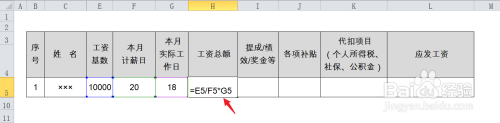 工资总额输入公式“=E5/F5*G5”,按回车键。