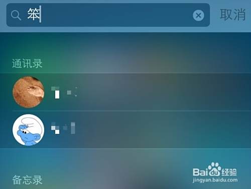 上面的方法比较简单,一般的小伙伴都应该知道。除了上面的方法以外,我们还可以借助 iOS 系统上的 Spotlight 搜索功能。通过它可以快速地找到联系人,这里以 iOS7 系统为例,在任意主屏上从屏幕顶部向下滑动,即可打开搜索功能。