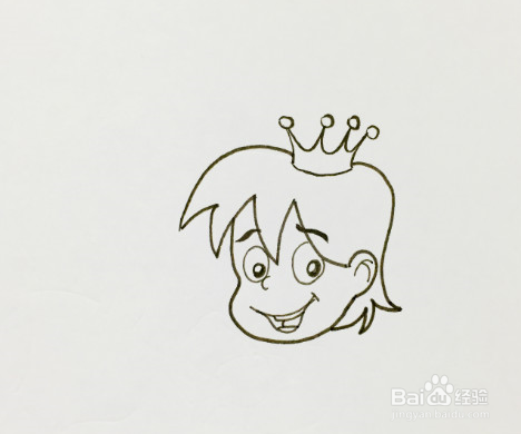 先画出王子的脸和头发,头顶是带一个帅气的皇冠,皇冠上画一些珠子点缀会更漂亮些。